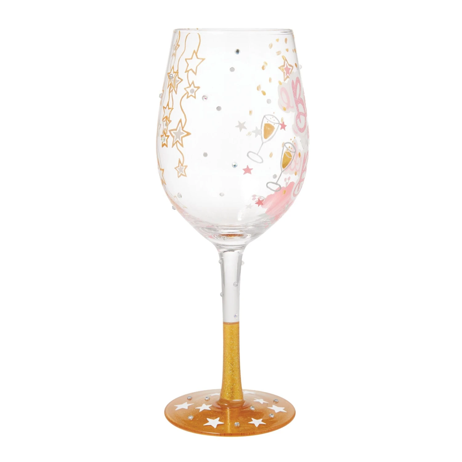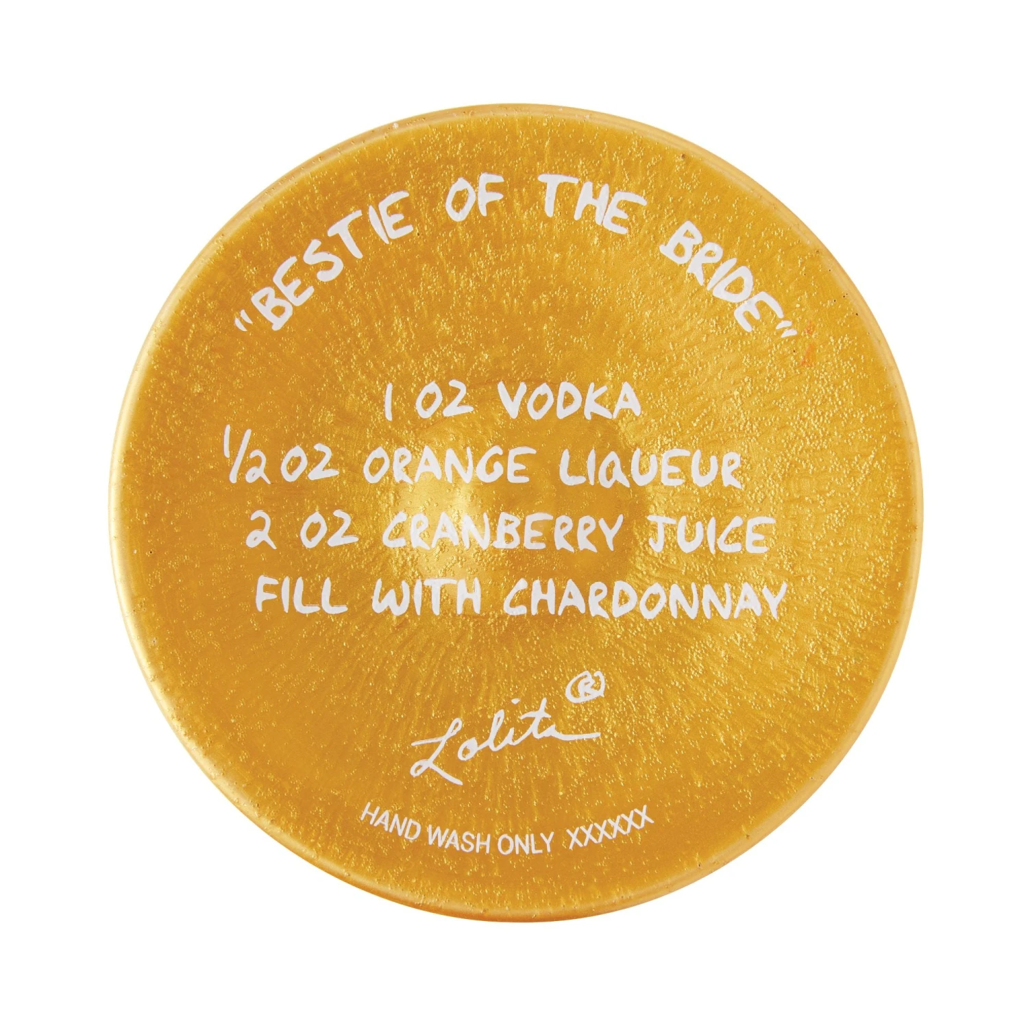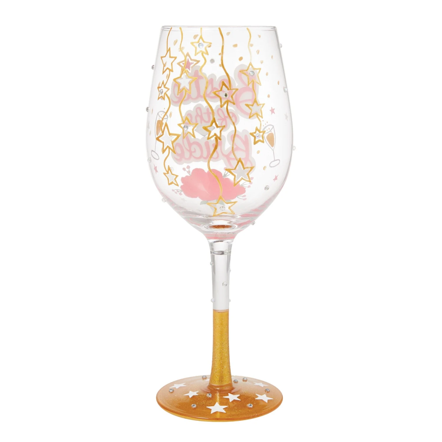 Celebrate everlasting friendship with this lovingly hand-painted wine glass from Lolita designed for any of the brides besties. Adorned with sparkling glitter, stars, and beautiful flowers, it honors cherished besties of the bride now and forever.