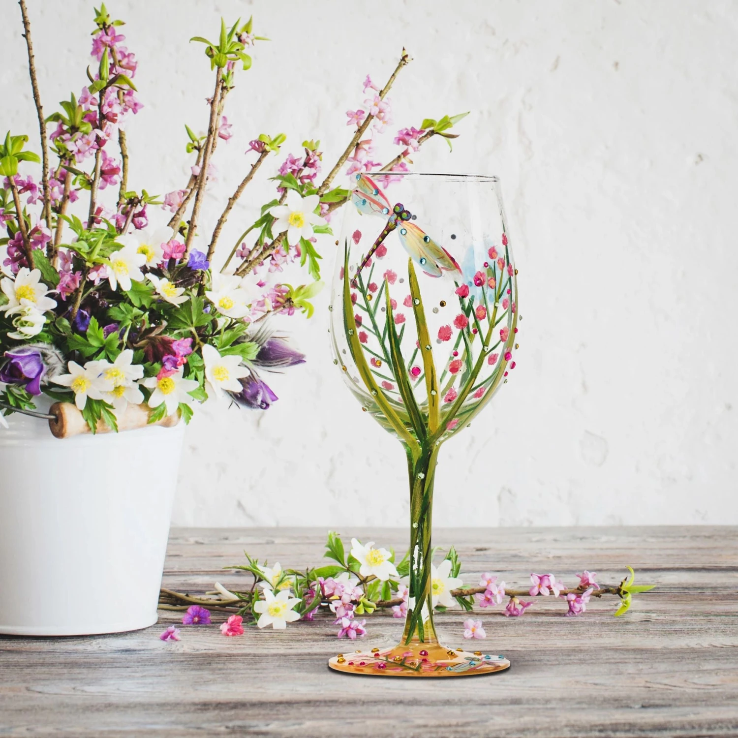 - “Dragonfly” wine glass from Designs by Lolita
