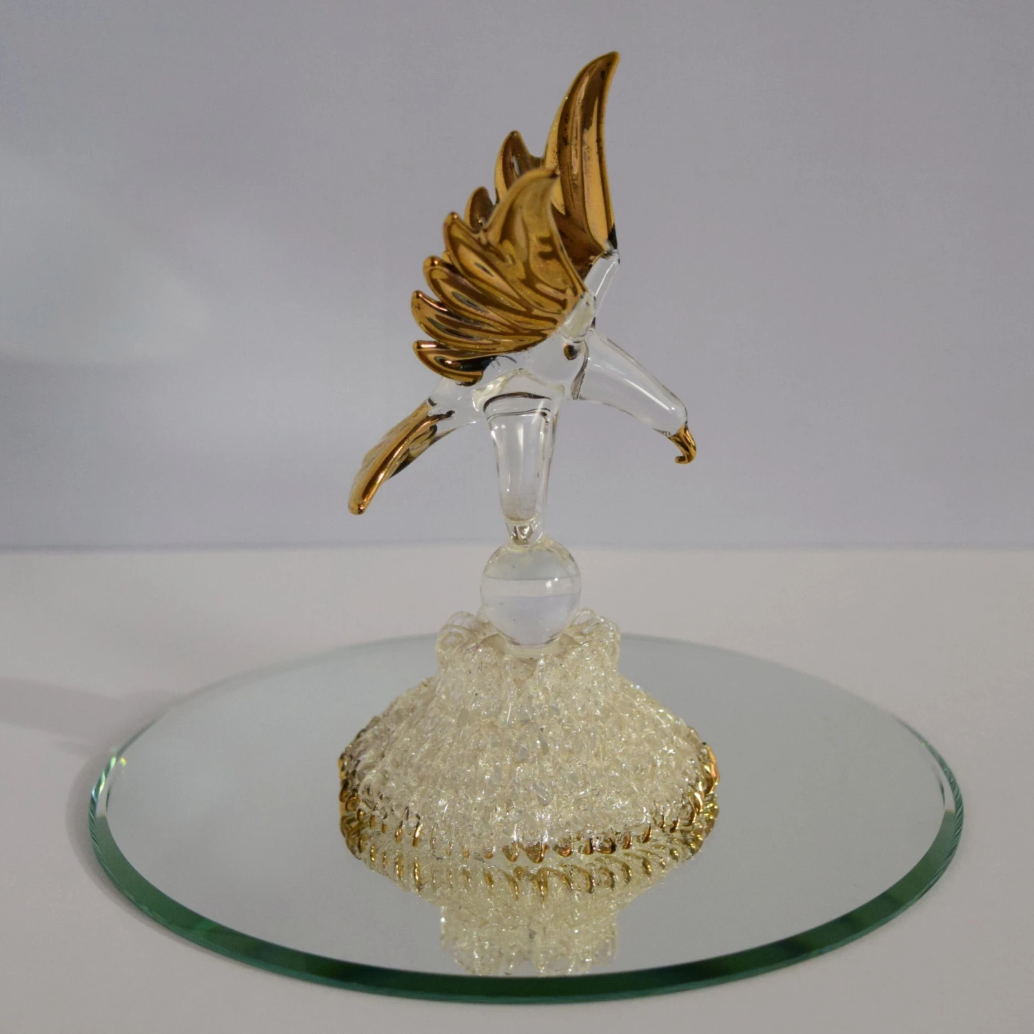 Do you or someone you know enjoy the great outdoors and all the animals? Well this is the perfect gift for them. This beautifully hand crafted glass eagle will always shine! Hand Blown by our very own glassblower! Add this piece to your collection today! (Mirror not included, sold separately)