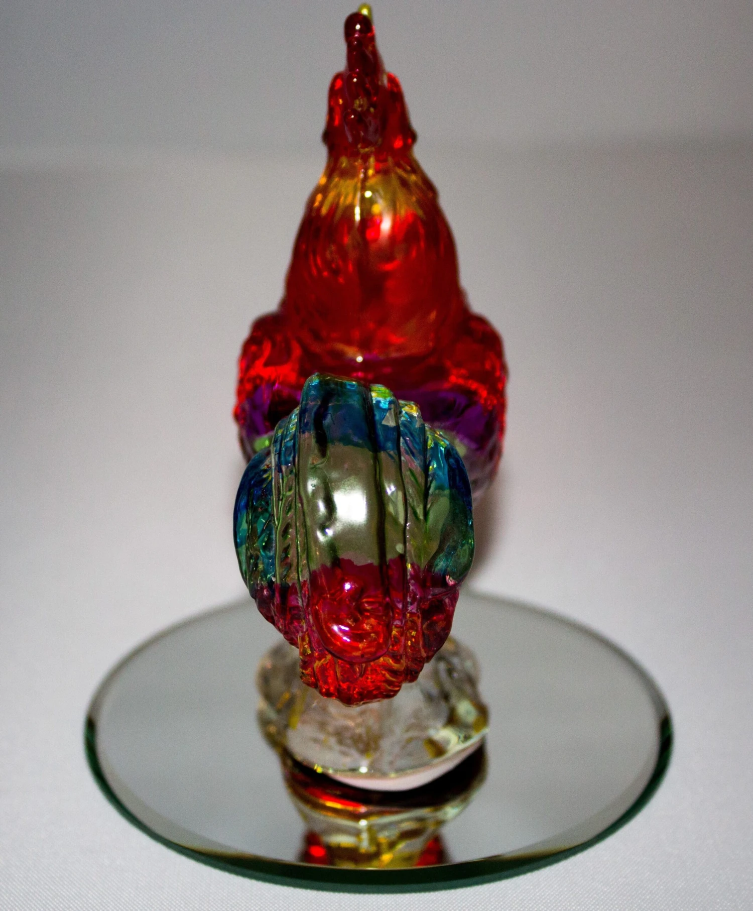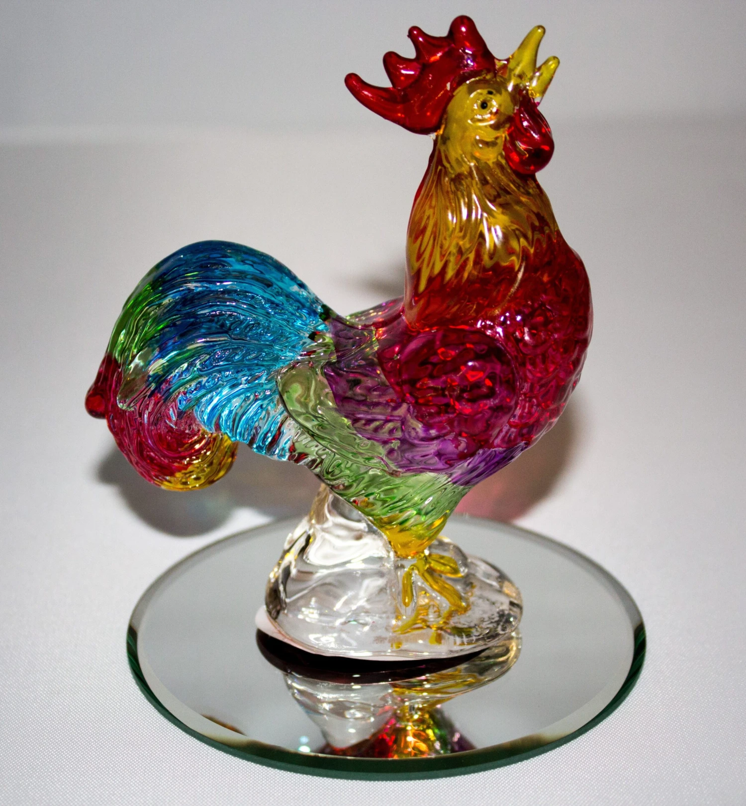Cock-a-doodle-doo! Wake up to a handmade blown glass rooster whose beauty you can enjoy all day long with a beautiful blend of colours.
