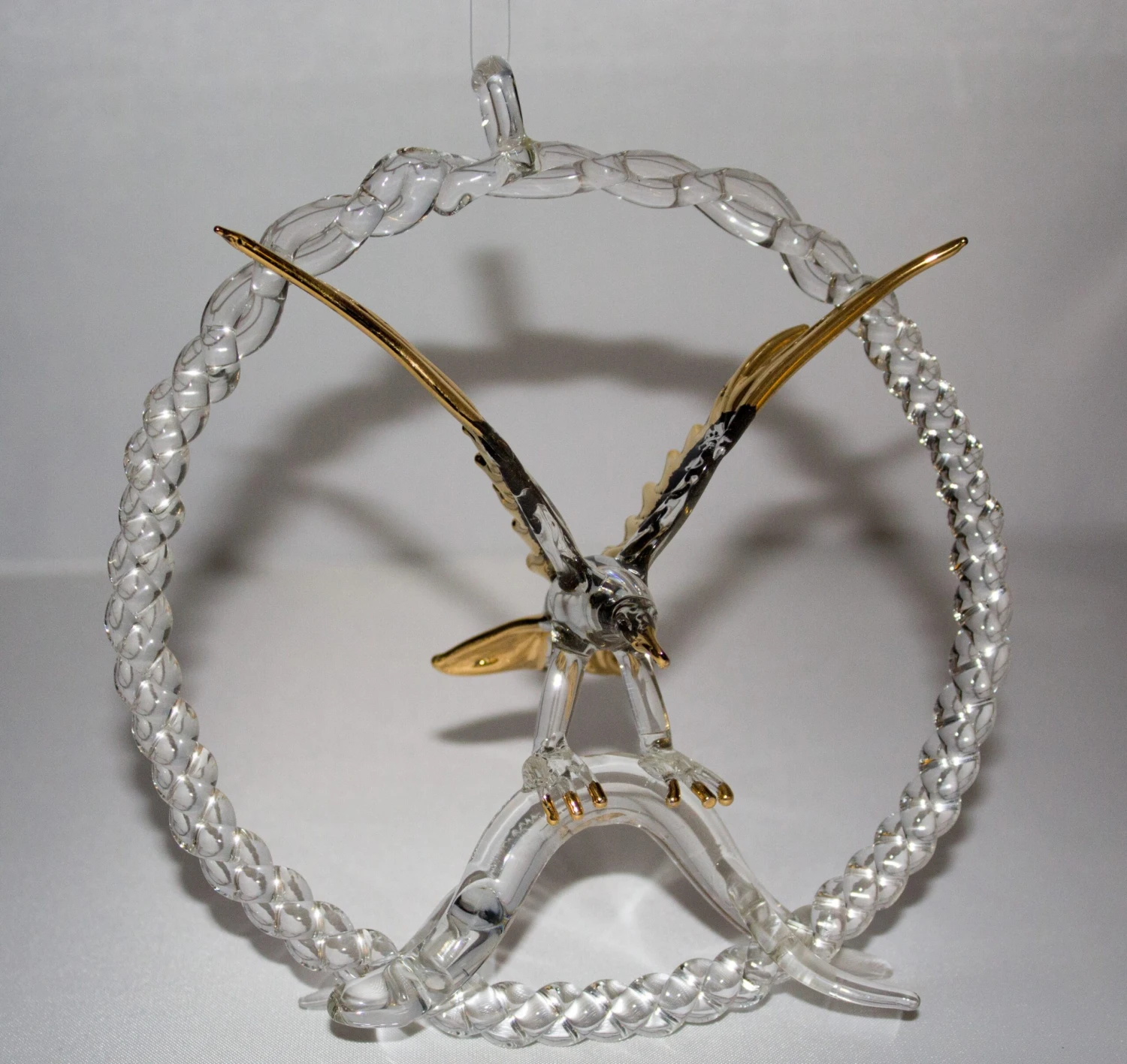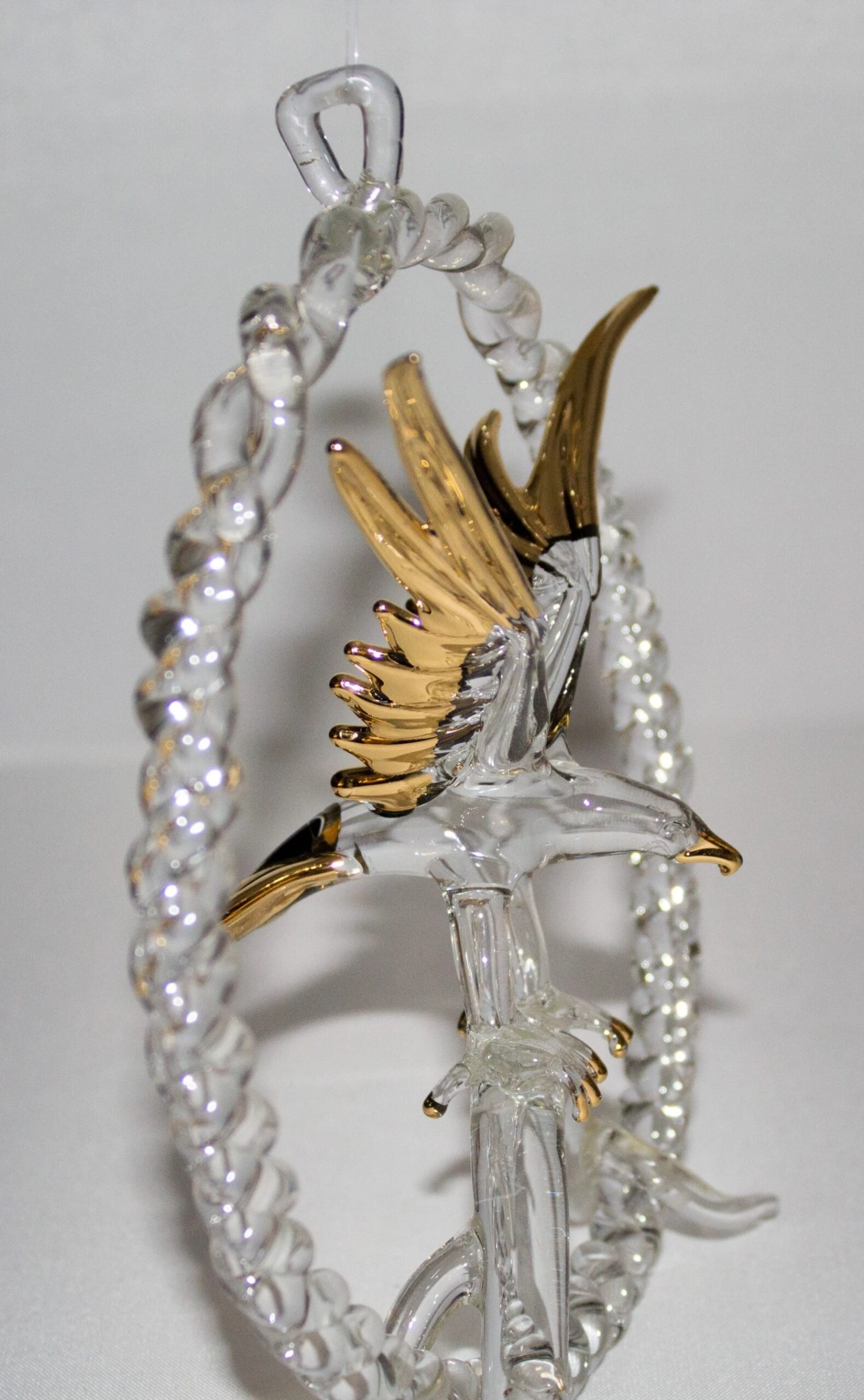 et your patriotism soar alongside this beautiful hanging blown glass eagle made with 22K gold plating in Manitou Springs, Colorado.