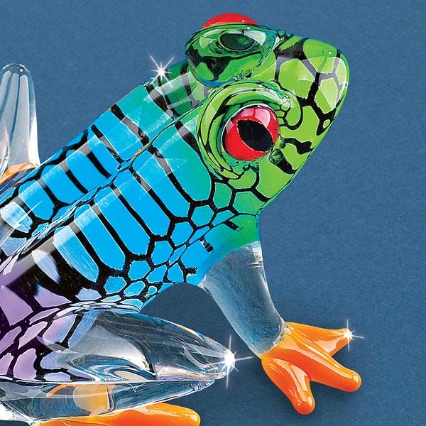 This lovely glass frog is a marvelous sight. Part of the Glass Baron collection these hand blown frog is perfect for any amphibian lover.