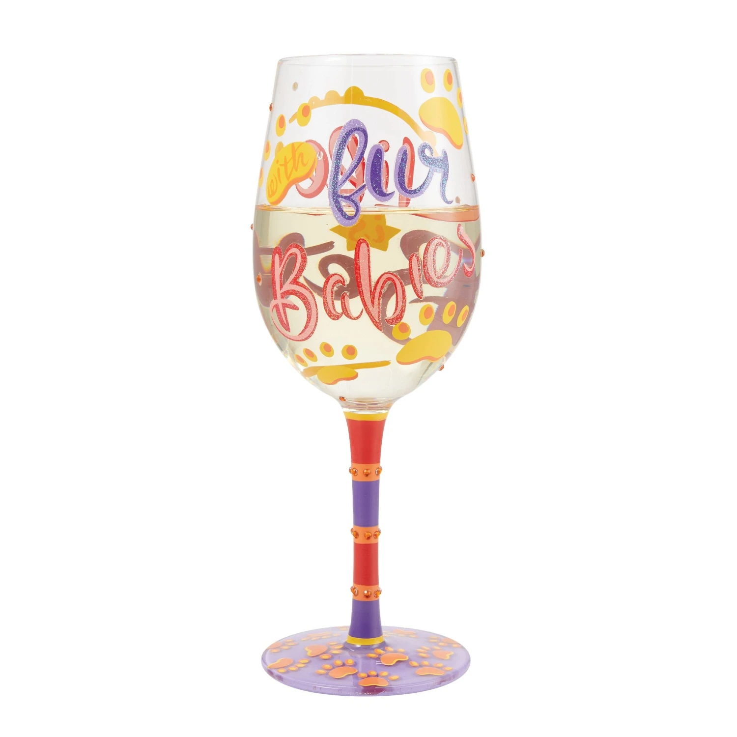 This colorful cup tells universal truths with style and sparkles. Covered in paw prints and lively pattern, inlaid crystal details gleam from the hand-painted cup. This gorgeous wine glass reminds us life is better with fur babies, cheers to them!