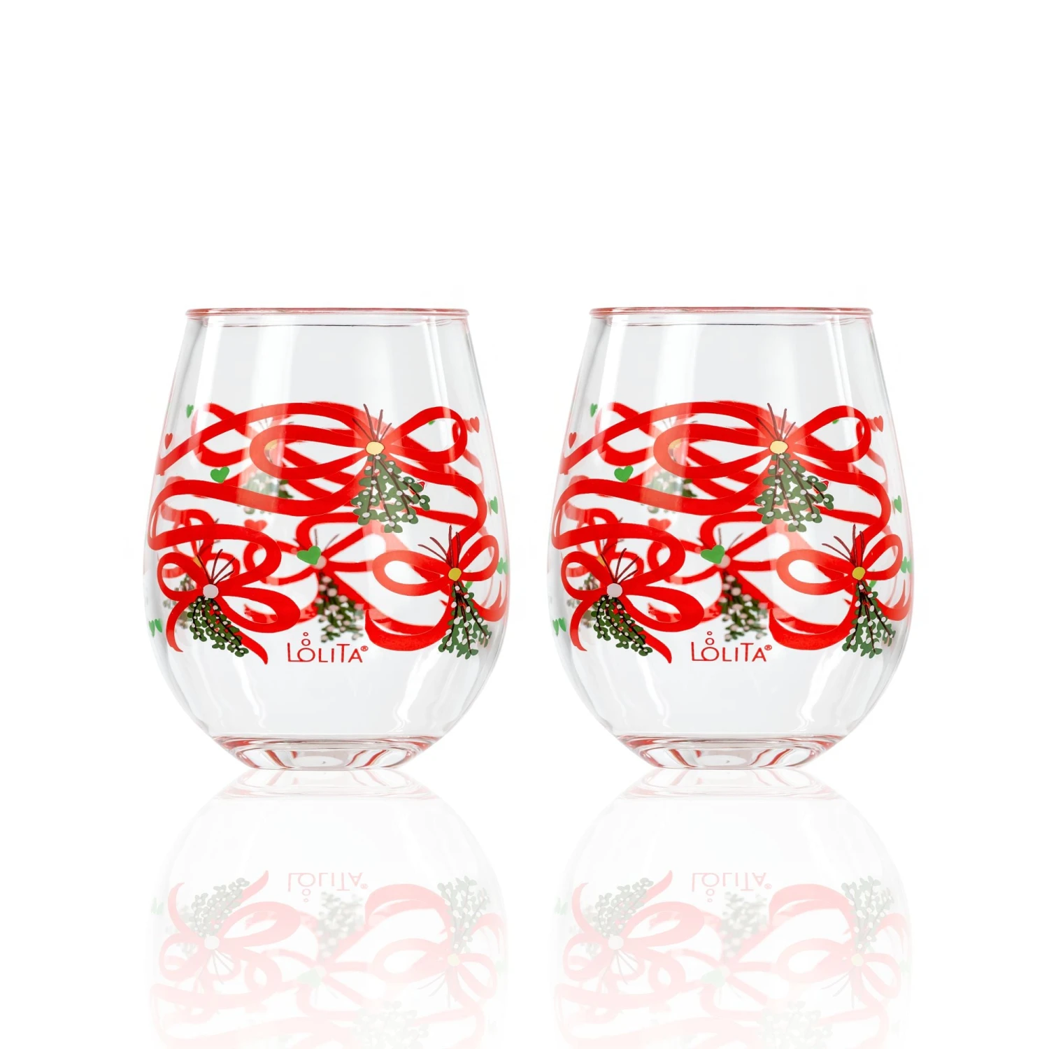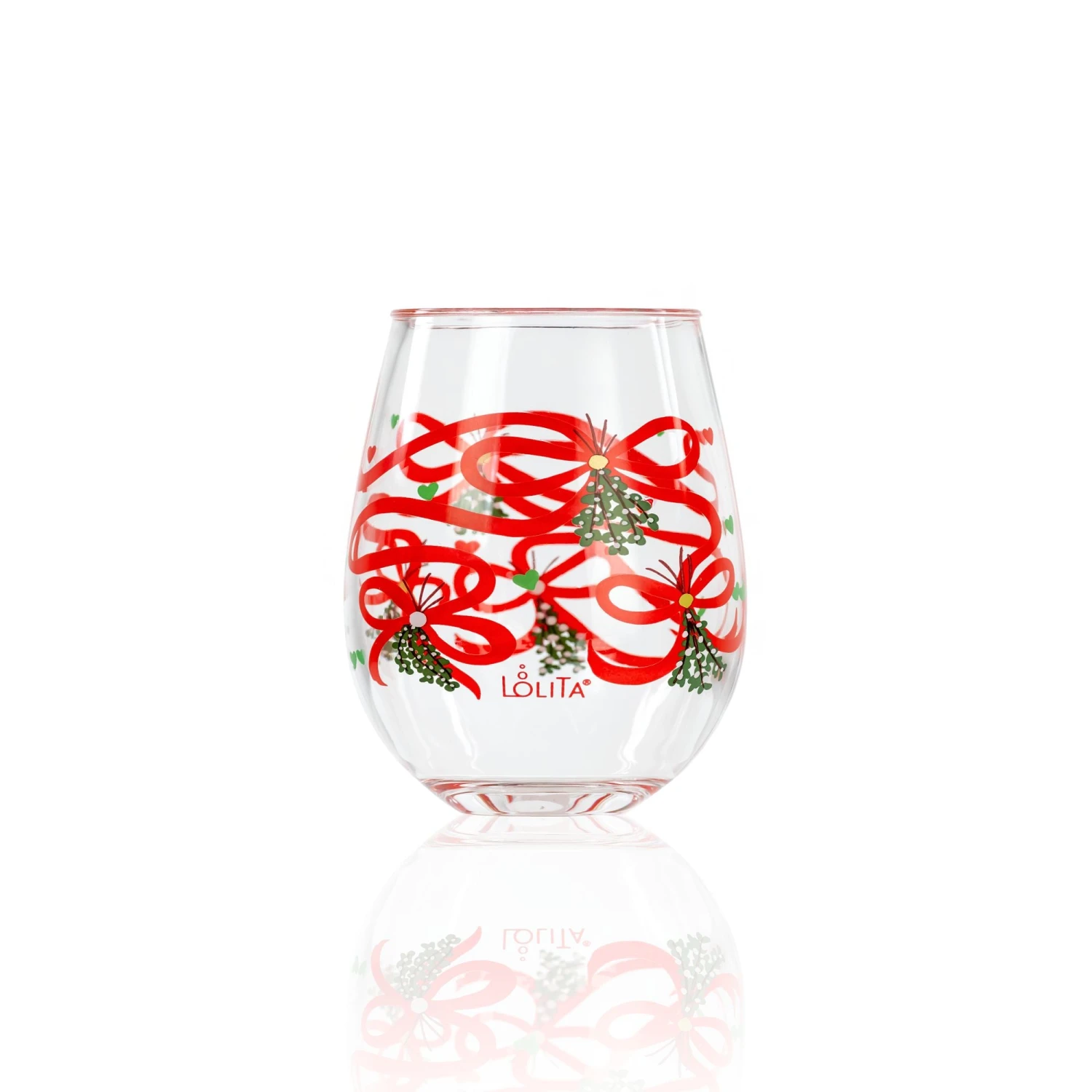 Kiss your partner and celebrate the holidays with these whimsical acrylic stemless wine glasses.
