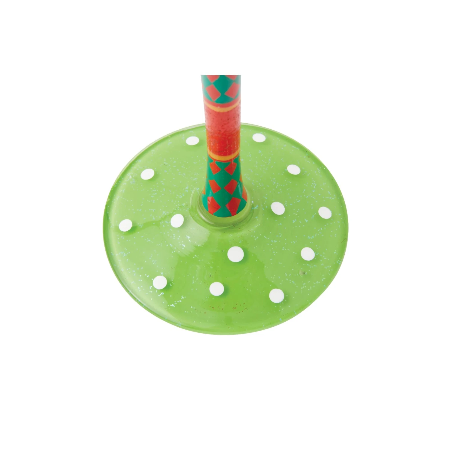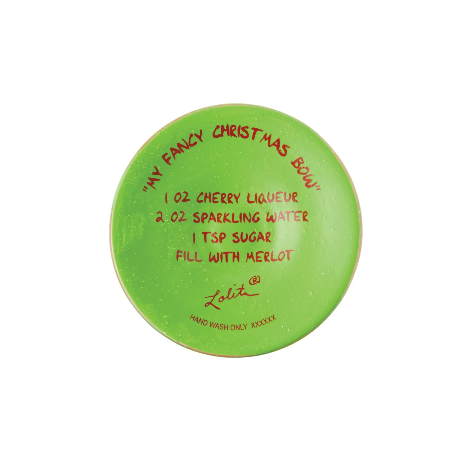 This festive hand-painted wine glass from Lolita is a gift to enjoy again and again. With a fancy red and green bow, enchanting patterning, and mistletoe, this gorgeous glass wraps your favorite beverages with glitter for season-long holiday cheers.
