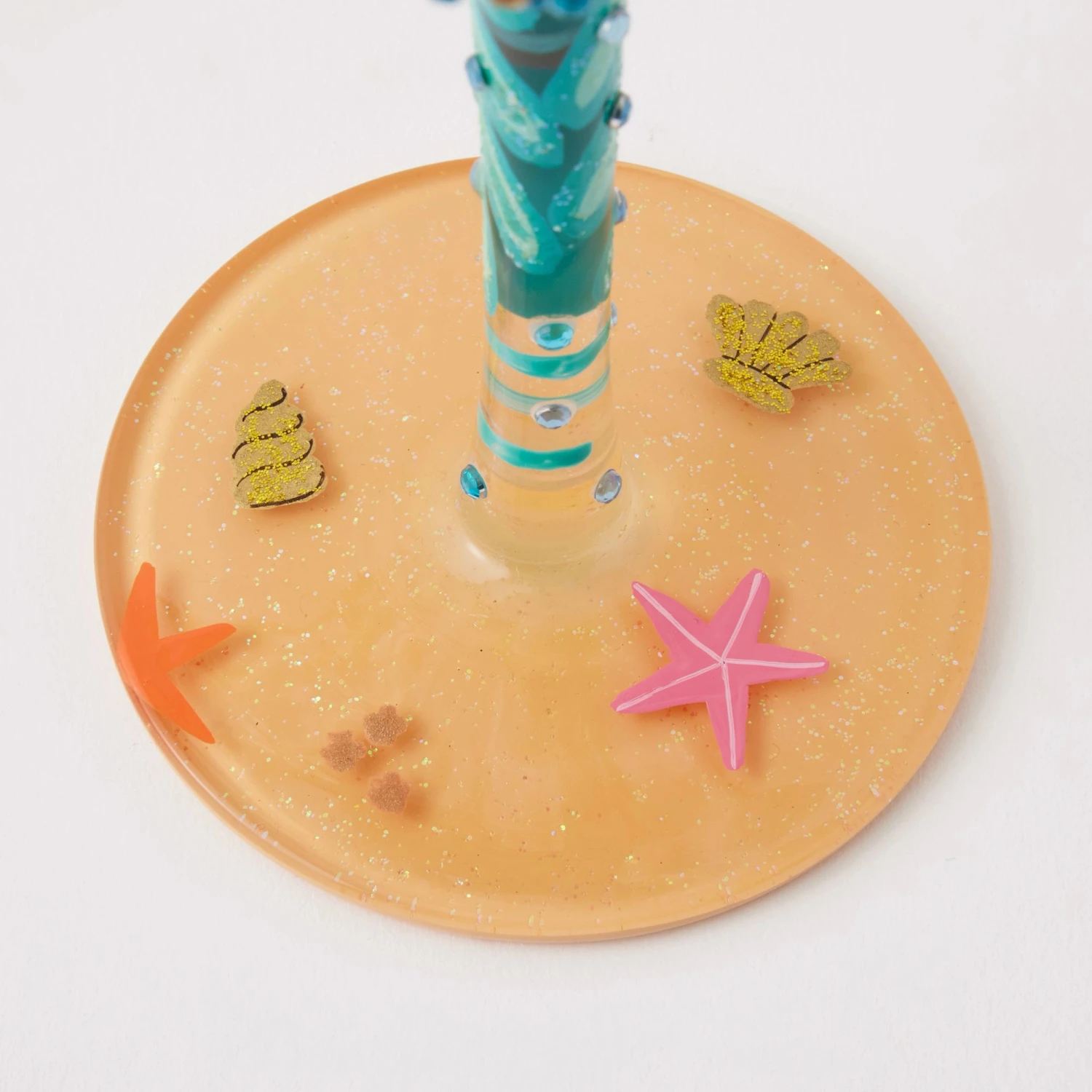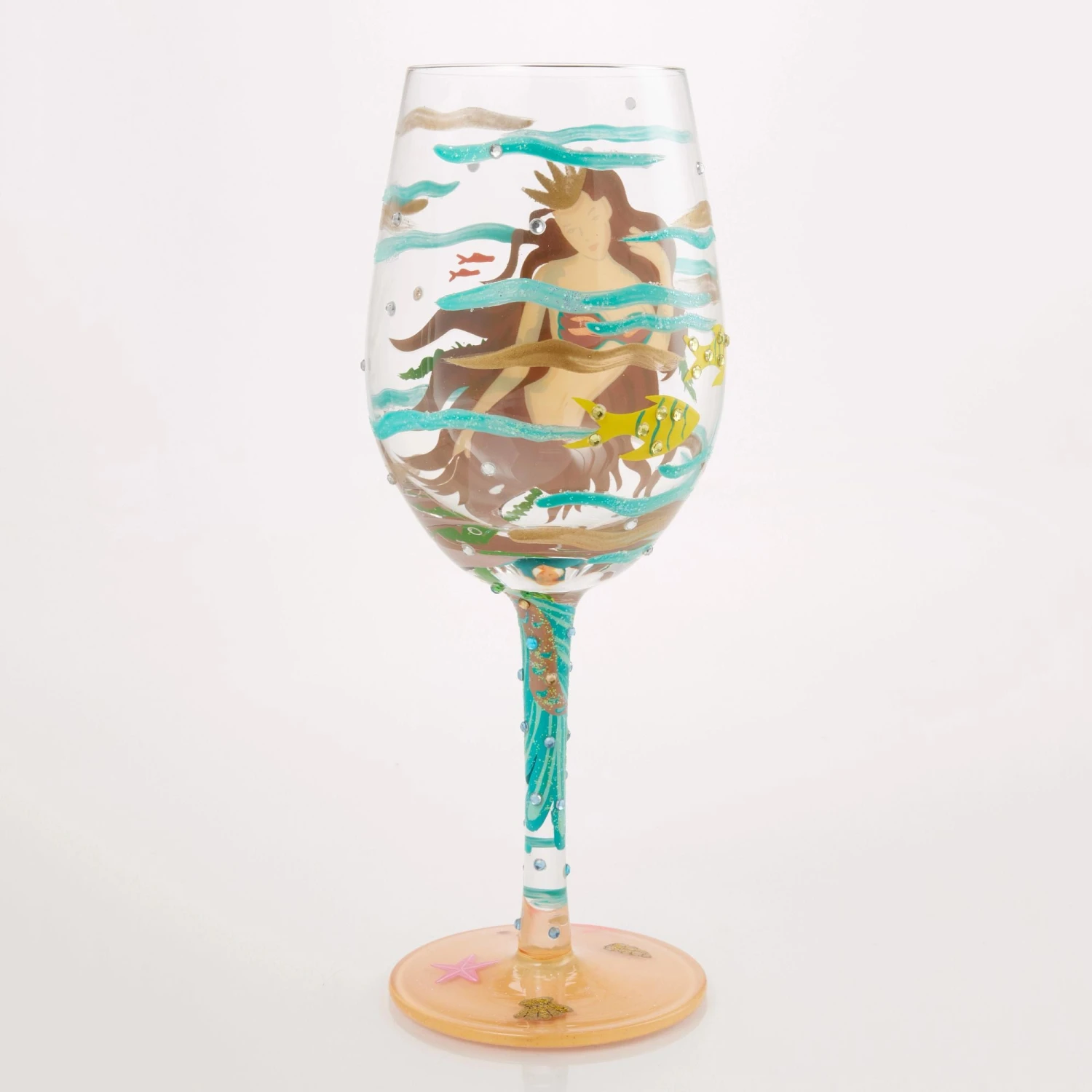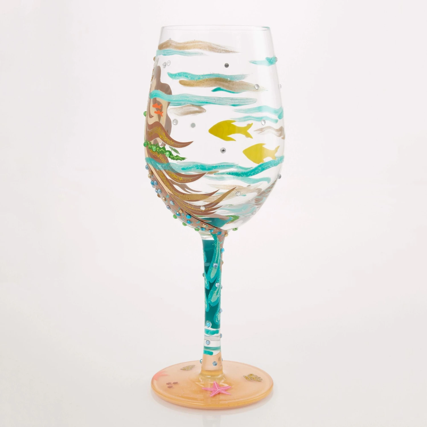 Dive into a world of oceanic magic with this Lolita wine glass, adorned with sandy shores, fish, and an enchanting mermaid with long flowing locks. Bejeweled details add marine mysticism, making every sip feel like an underwater adventure.
