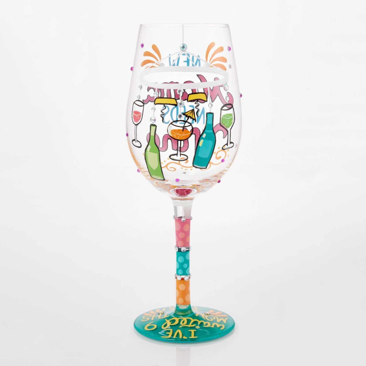 Cheers to new beginnings with this playful Lolita wine glass, made especially for new moms! With the cheeky message “She’s waited nine months for this,” and a fun drink-themed crib mobile, it’s the perfect celebration of her return to wine time.