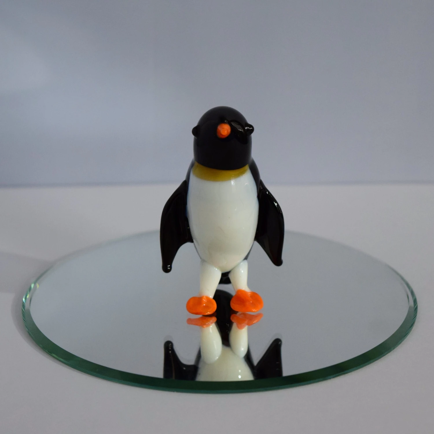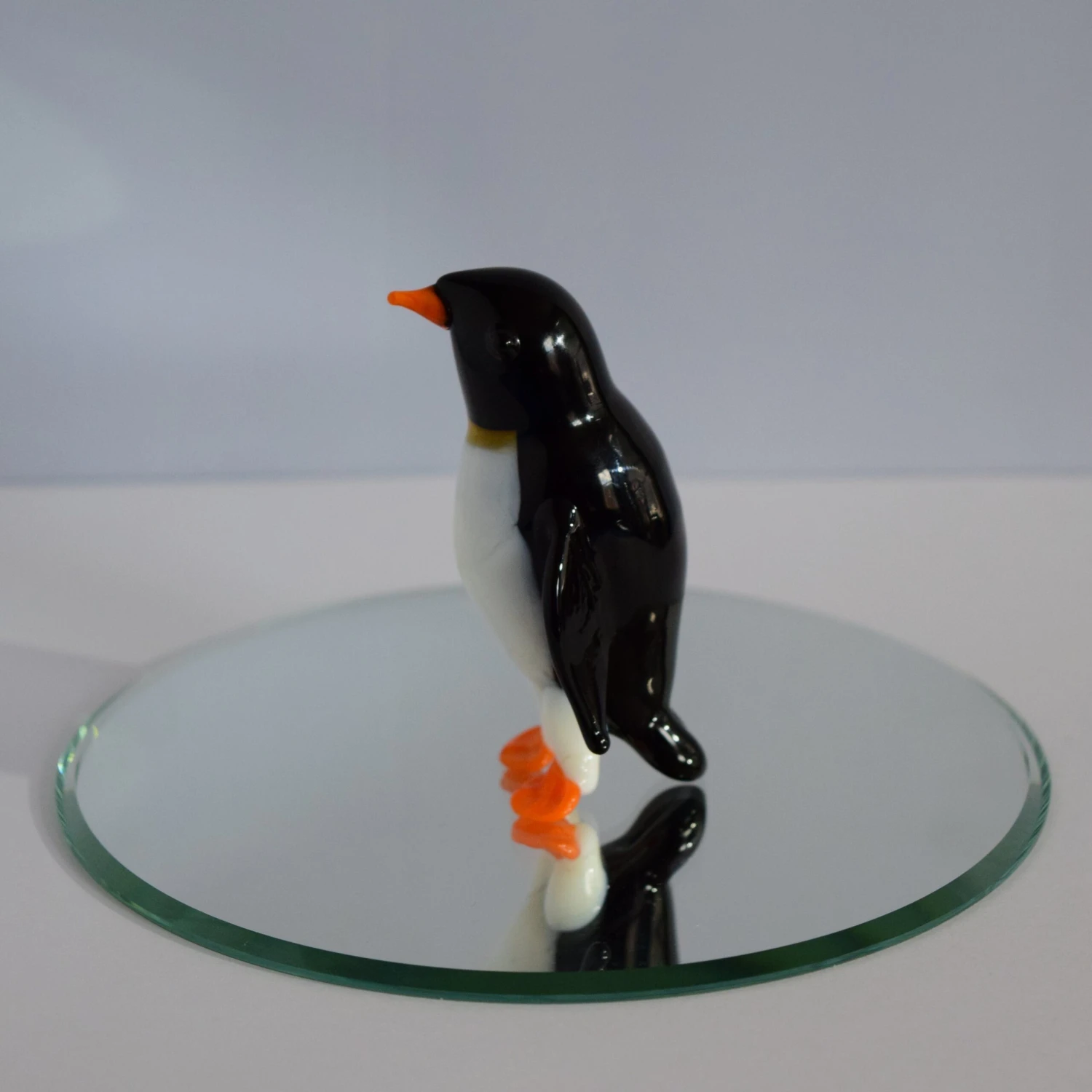 Do you or someone you know enjoy the great outdoors and all the animals? Well this is the perfect gift for them. This beautifully hand crafted glass penguin will always shine! Hand Blown by our very own glassblower! Add this piece to your collection today! (Mirror not included, sold separately)