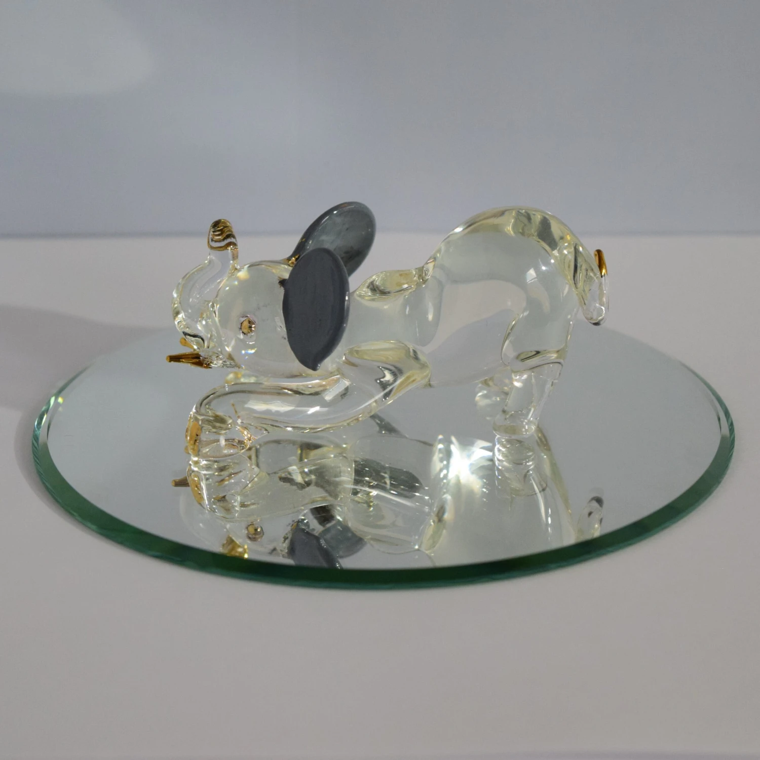 Do you or someone you know enjoy the great outdoors and all the animals? Well this is the perfect gift for them. This beautifully hand crafted glass elephant will always shine! Hand Blown by our very own glassblower! Add this piece to your collection today! (Mirror not included, sold separately)