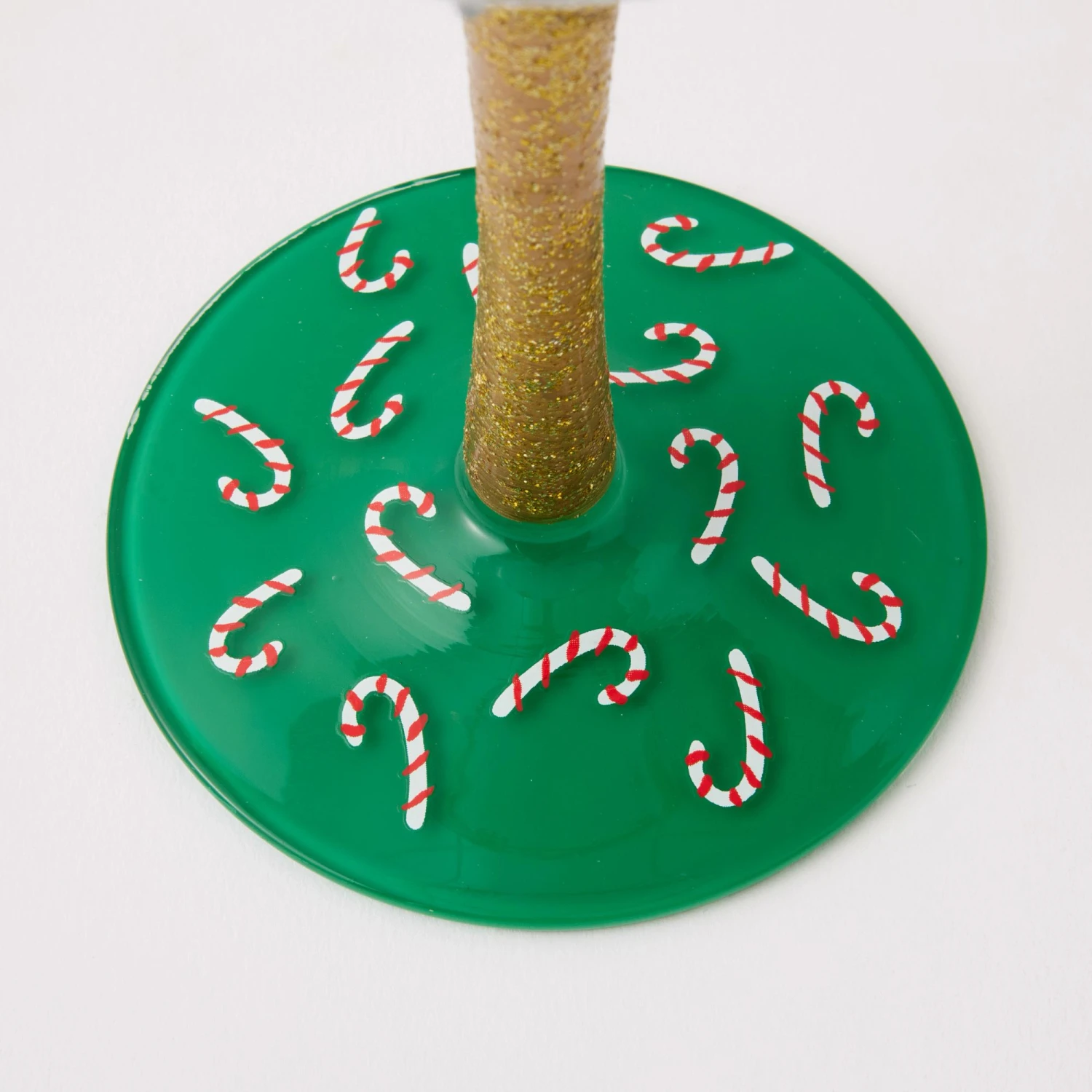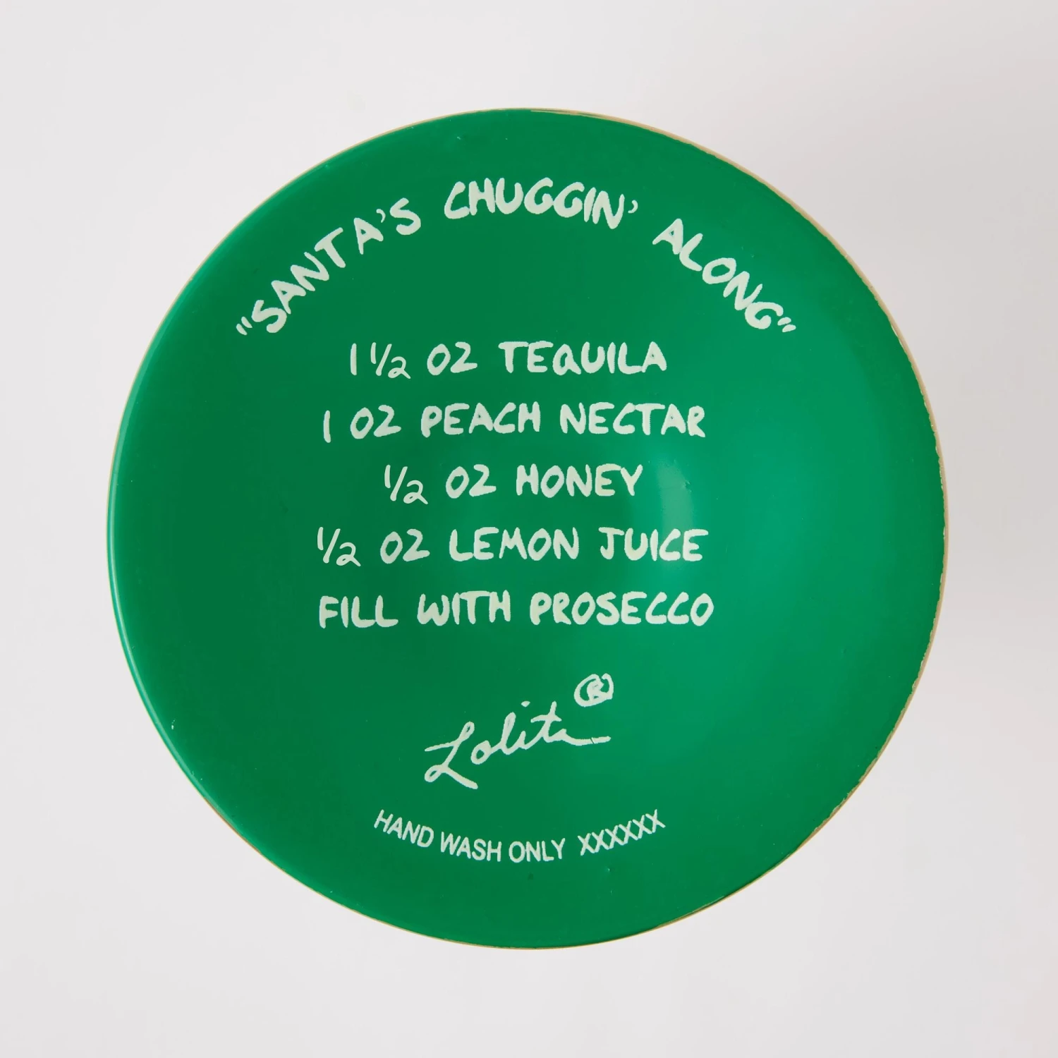 All aboard the holiday express with this delightful Lolita wine glass, featuring Santa waving from a festive red, green, and gold train engine. Towing a decorated Christmas tree and a truckload of presents, it sparkles with Christmas cheer!
