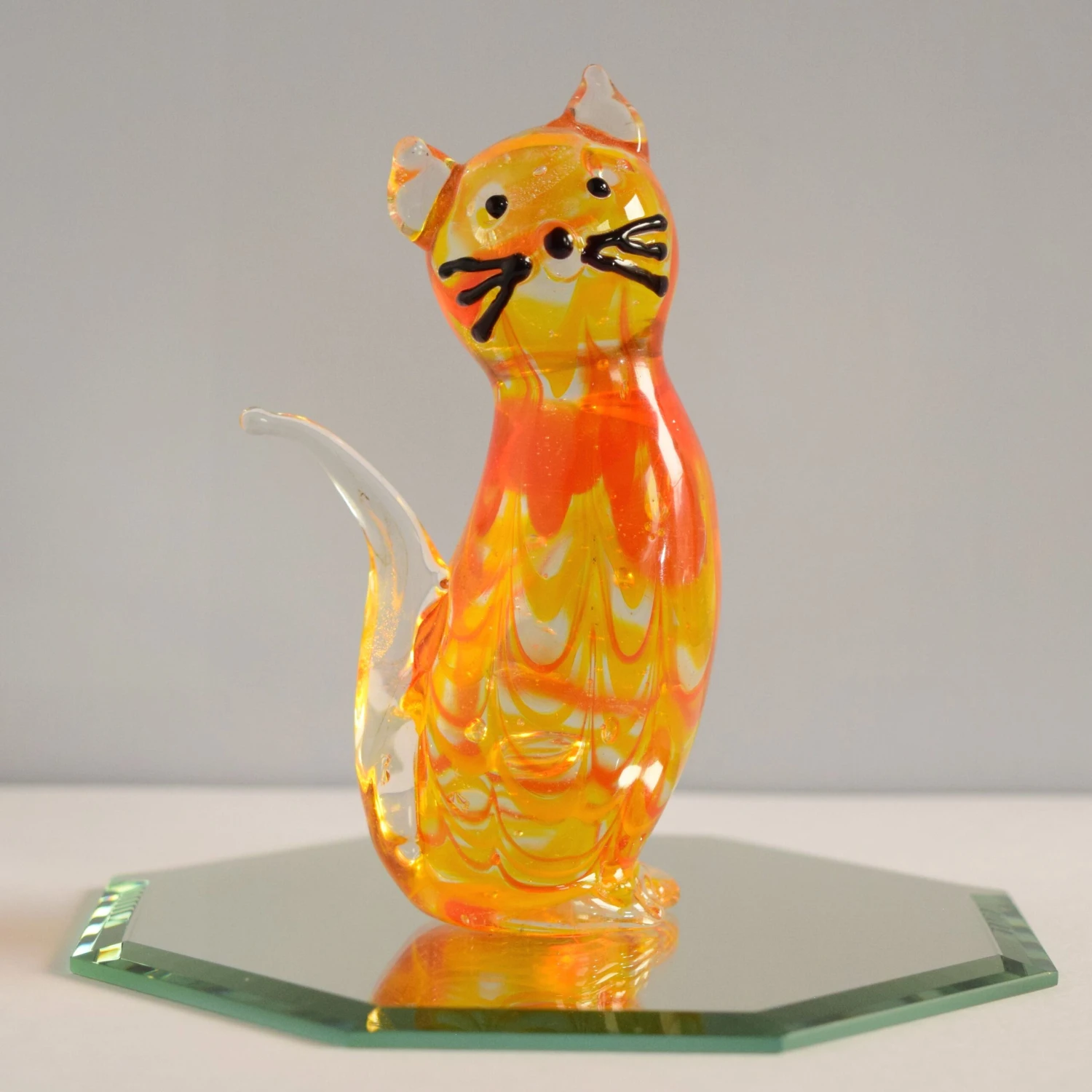 Do you or someone you know enjoy animals? Well this is the perfect gift for them. This beautifully hand crafted glass sitting cat will always shine! Hand blown by our very own glassblower! Add this piece to your collection today!