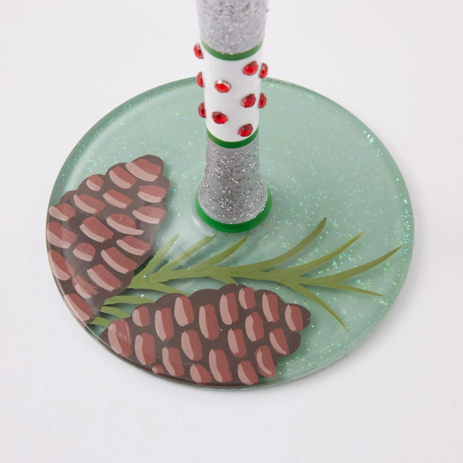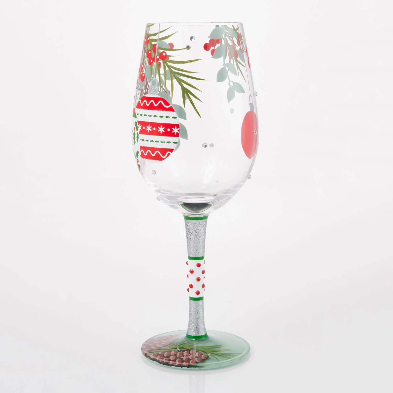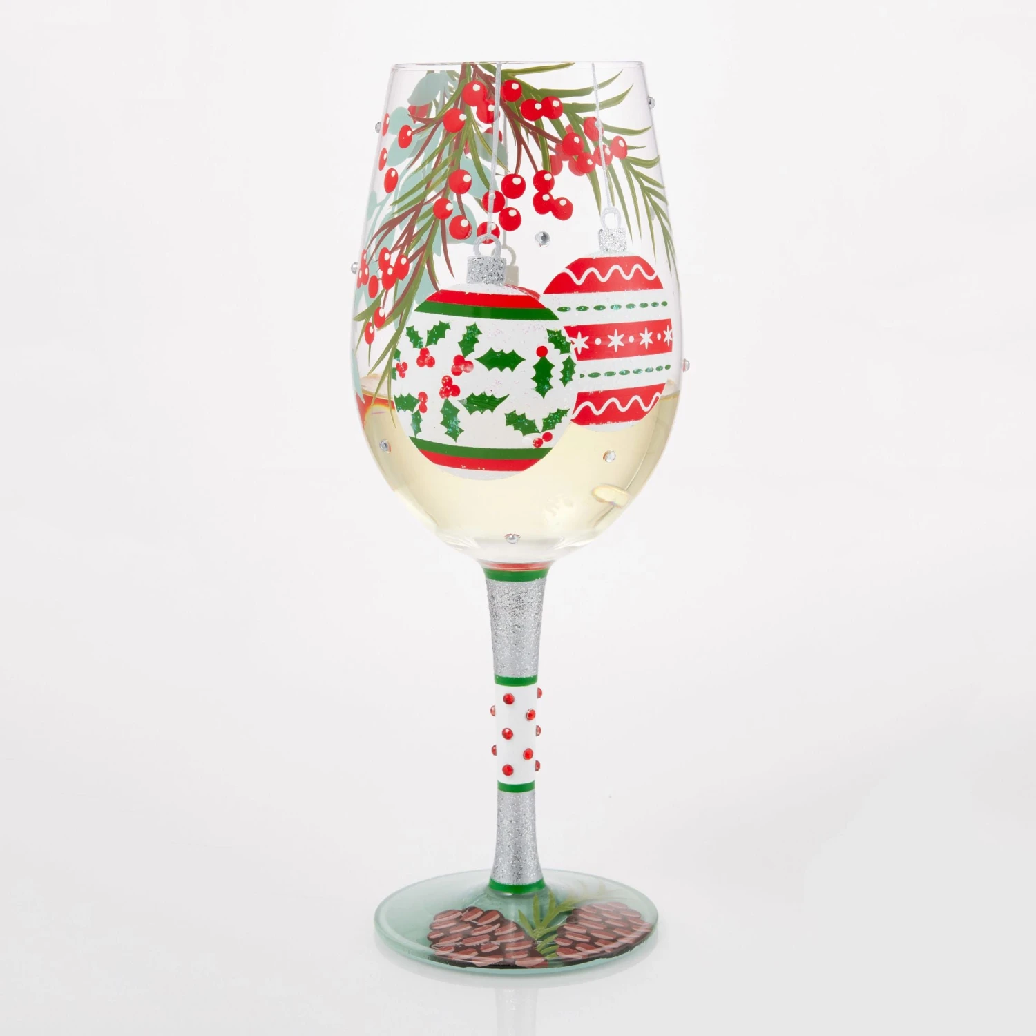 Celebrate the season in sparkling style with this enchanting Lolita wine glass, offering a glimpse inside a festive tree. Adorned with glittering ornaments, pinecones, holly leaves, and bejeweled details, it’s a dazzling toast to holiday magic.
